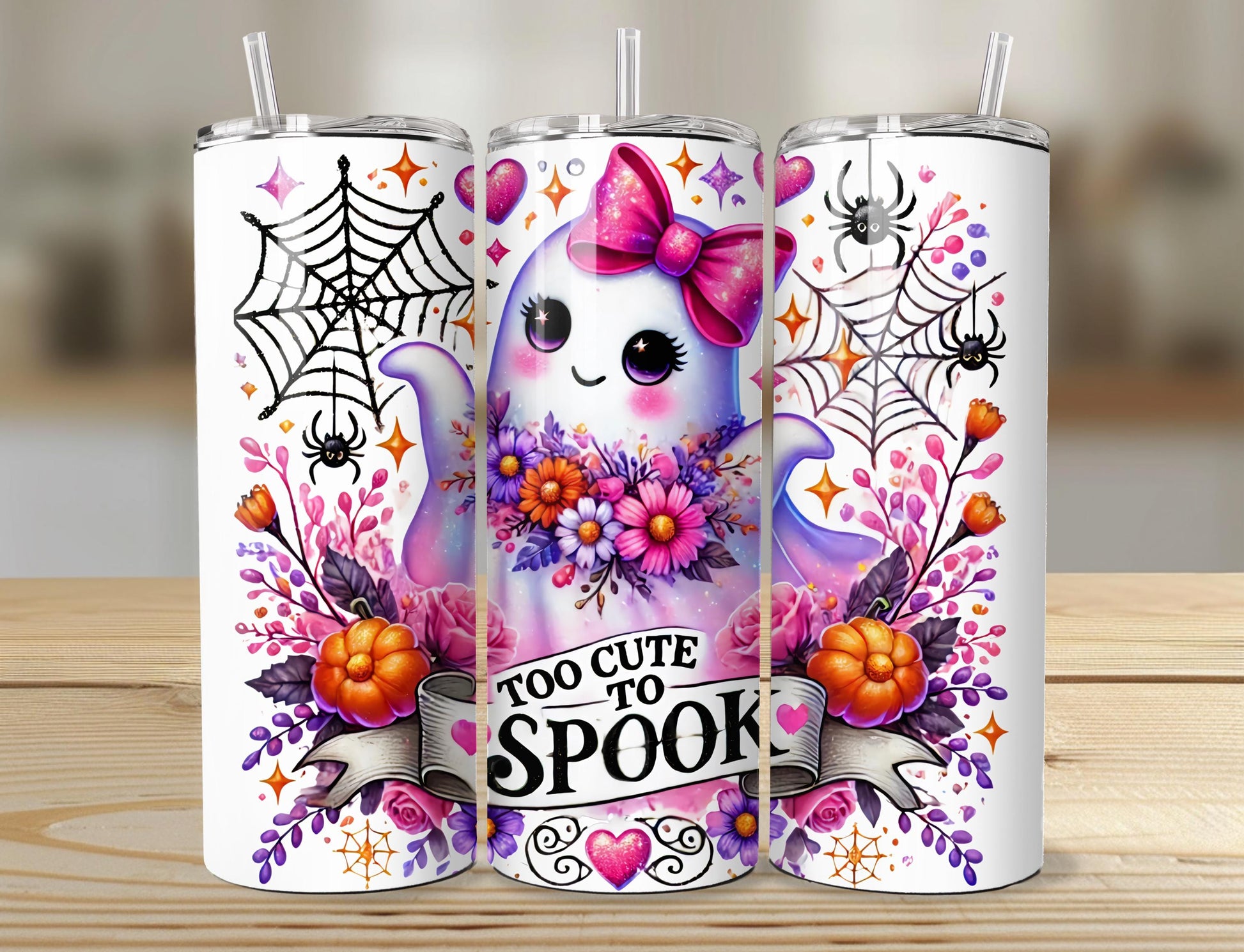 Too Cute To Spook Ghost Tumbler | 20oz Tumbler | Halloween Tumbler | Halloween Water Bottle | Cute Ghost Tumbler | Ghost With Pink Bow